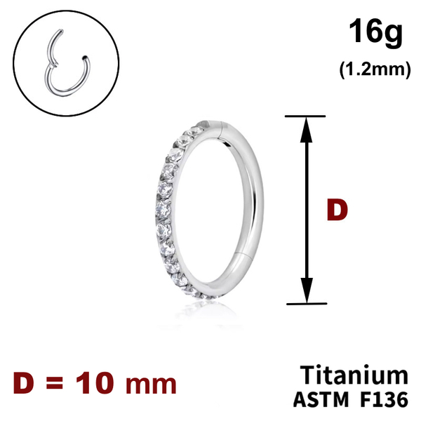 Кільце-клікер 10мм, з кристалами по кромці, 16g (1.2мм), ТИТАН