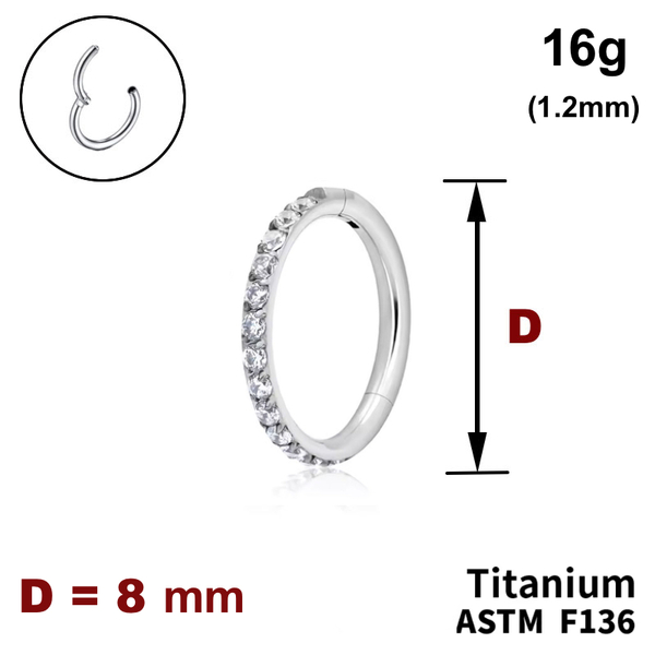 Кільце-клікер 8мм, з кристалами по кромці, 16g (1.2мм), ТИТАН