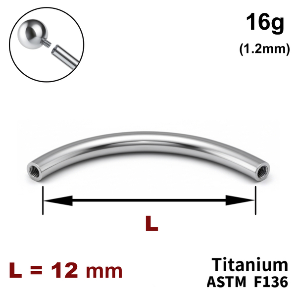 - Ніжка мікробанана 12мм, 16g (1,2мм), Усередині різьблення, ТИТАН