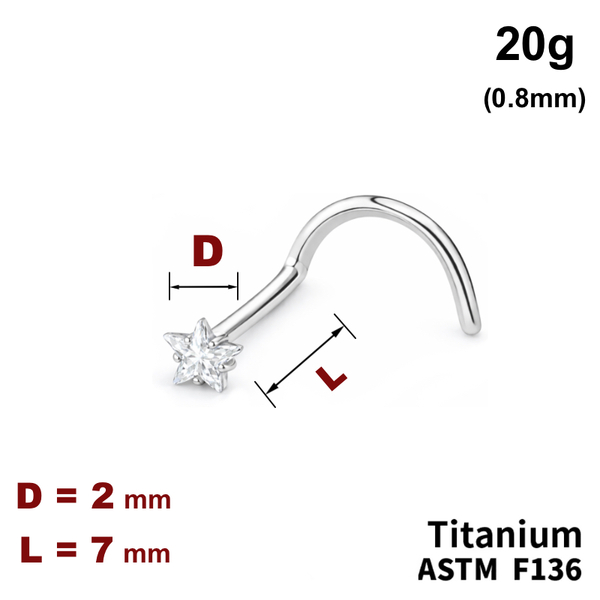 - Сережка-ностril у ніс вигнута, 7мм, вкраплена зірочка 3мм, 20g (0.8мм), ТИТАН