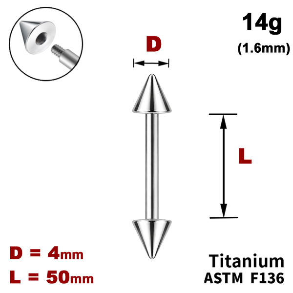 Штанга (барбелл) 50мм з конусами 4мм, 14g (1.6мм), Зовні різьблення, ТИТАН
