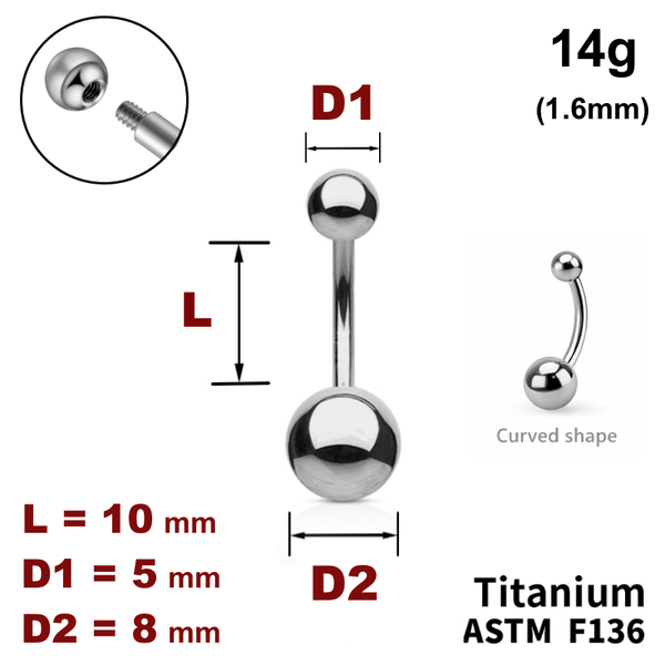 - Банан у пуп 10мм, кульки 5мм і 8мм, 14g (1.6мм), Зовнішнє різьблення, ТИТАН