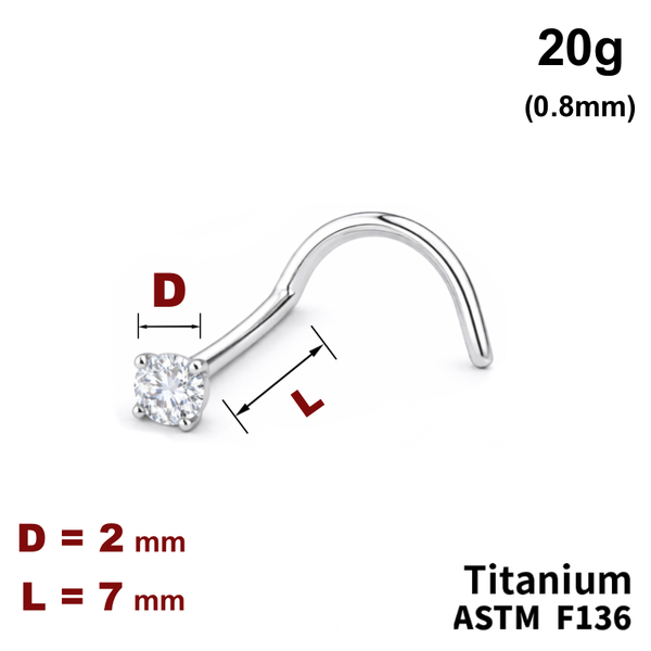 - Сережка-нострил у ніс вигнута, 7мм, вкраплений кристал 2мм, 20g (0.8мм), ТИТАН