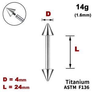 Штанга (барбелл) 24мм з конусами 4мм, 14g (1.6мм), Усередині різьблення, ТИТАН
