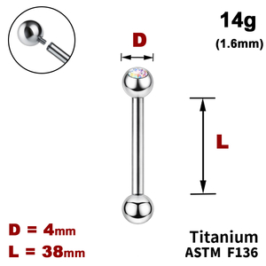 Штанга (барбелл) 38мм з кульками 4мм, одна з яких з Кристалом AB, 14g (1.6мм), Усередині різьблення, ТИТАН