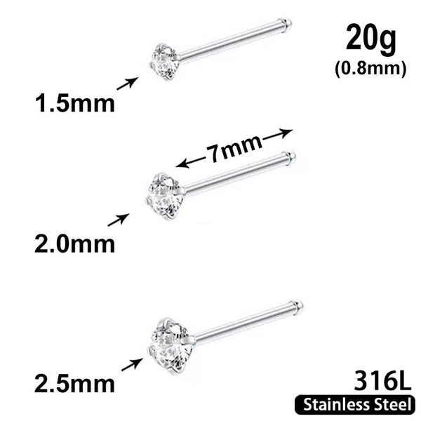 Серьга гвоздик с кристаллом, 20g, 7мм, хирургическая сталь