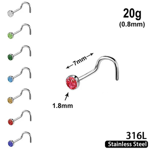 - Серьга нострилла изогнутая с плоским кристаллом, 20g, 7мм, хирургическая сталь